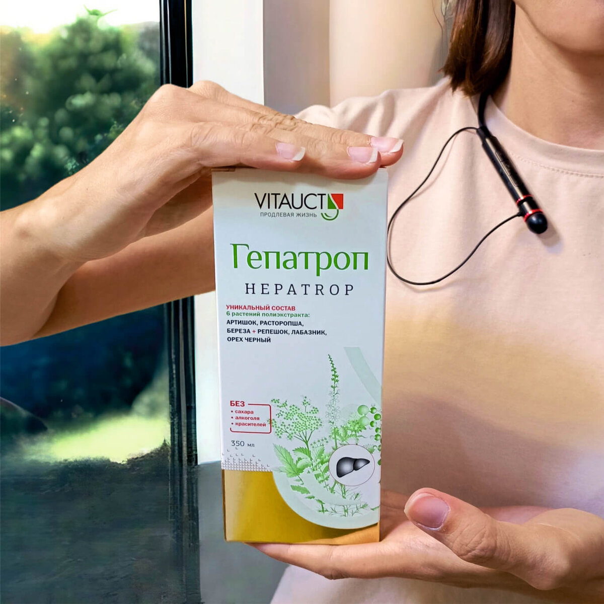Гепатроп - революционный продукт для здоровья печени Печень - один из самых важных органов человеческого организма. Печень участвует в обмене веществ, очищает кровь от токсинов, синтезирует белки, гормоны, желчь. Однако печень подвержена различным негативным воздействиям, таким как инфекции, лекарства, стресс, неправильное питание и др. Все это может привести к развитию различных заболеваний печени, таких как гепатит, цирроз, жировой гепатоз, холецистит. Эти заболевания могут нарушить нормальную работу печени и вызвать серьезные осложнения для всего организма. Поэтому очень важно заботиться о здоровье печени и поддерживать ее функции. Для этого необходимо соблюдать правильный режим питания и образ жизни, избегать факторов риска и принимать специальные препараты для печени. Одним из таких препаратов является Гепатроп от Vitauct - это растительный продукт для комплексной защиты и питания печени. В своем составе он содержит одни из самых важных компонентов для печени: артишок, расторопшу,