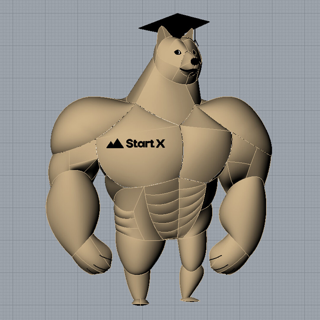 Согласовали расположение и размер надписи «Start X» с маленькими треугольниками в начале логотипа, символизирующими горы. Нужно было сделать ее как можно крупнее, и изначально планировалось расположить слева над сердцем, но правая грудь оказалась больше, и мы переместили надпись на нее. Параллельно с разработкой 3D-модели и построением лекал мне нужно было обеспечить себе фронт работ непосредственно по пошиву куклы. А для этого подобрать и согласовать материал, запастись набивкой, остатков которой у меня едва хватило бы на одну куклу (а их нужно две и сколько именно набивки потребуется сказать сложно), купить крепкие нитки, фетр и т.д. Когда в шаговой доступности нет магазина для рукоделия с минимально необходимым ассортиментом любая поездка за условными «иглами для швейной машины» оборачивается колоссальной потерей времени, а я себе этого позволить никак не мог в данных условиях. По ткани выбор был невелик – или плюш или мех. С плюшем все просто – он очень качественный, приятный на ощ