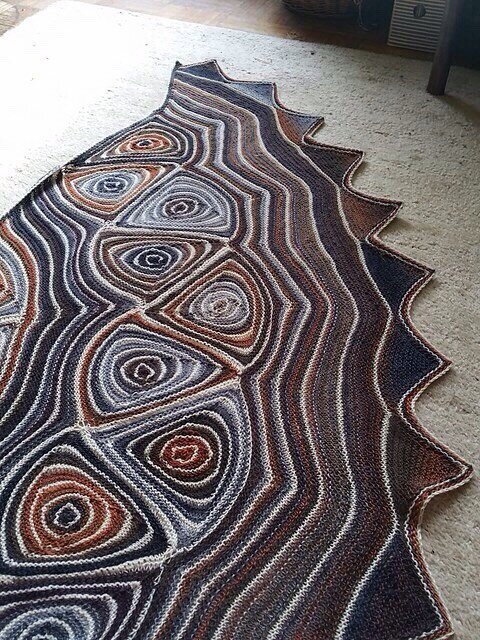 Linientreu 'Linientreu' - это полукруглая шаль , связана чередованием равносторонних треугольников и рядов простой платочной вязки. Треугольники связаны между ( не сшиты!). Треугольники по краю шали выполнены укороченными рядами . Размеры (после блокировки): 170 х 65 см Материалы: Пряжа: 250 g Lang Mille Colori Baby (100% virgin wool), 190 м / 50 г, цвет 845.0075 (= 50 г Drops Fabel (75% шерсть, 25% полиамид), 205 м / 50 г, цвет 100 (= Цвет В) Круговые спицы US 5 (3,75 мм) (я использовала спицы Knit Pro Cubics 4,0 мм или US 6) четыре чулочные спицы US 4 (3,5 мм) 7 маркеров штопальная игла