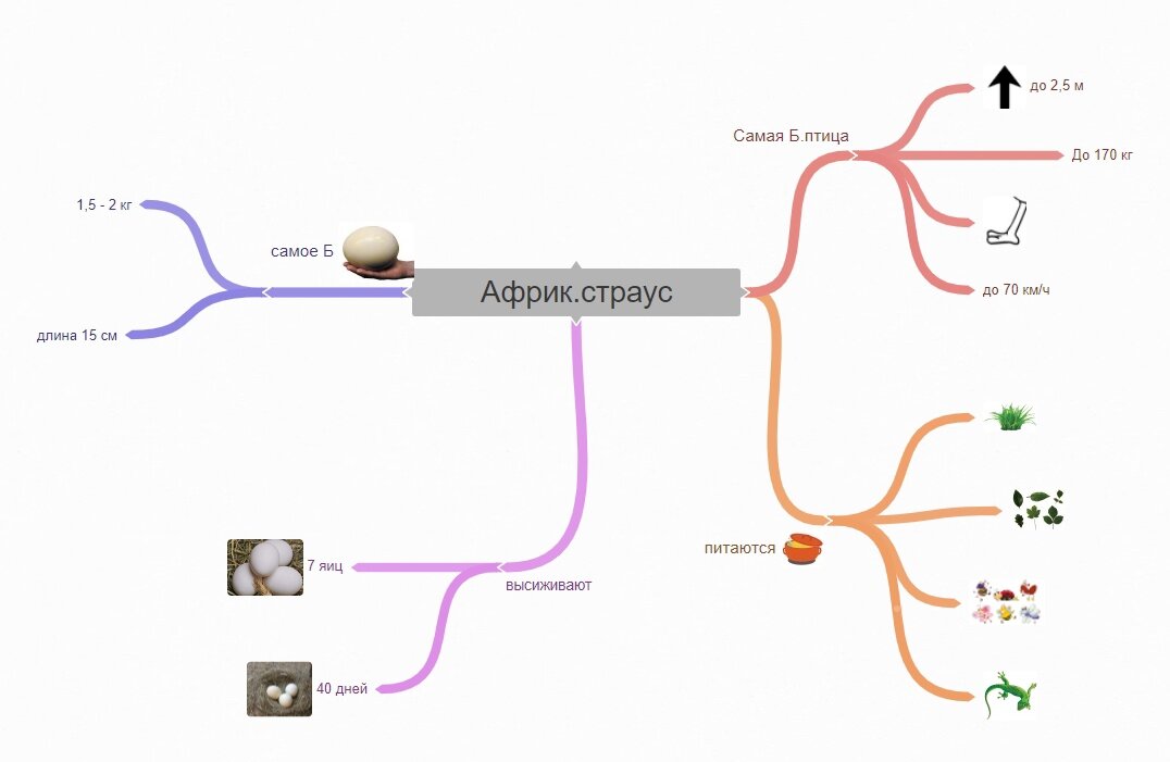 Как майнд карты помогут учиться в начальной школе. 5 причин освоить и использовать. Схемы таблицы, конспекты – привычные нам формы работы с информацией. Но есть более удобный вариант – майнд карты. Интеллект карты или карты ума – называть можно по-разному, но суть от этого не меняется. Посмотрите на этот рисунок. Наверняка уже через пару минут даже ваш ребенок легко расскажет особенности страуса. И для этого не придется читать большой текст или что-то заучивать. Достаточно посмотреть и выразить то, что видишь, своими словами. Это майнд карта по тексту. Сам текст занимал больше половины страницы А4, но у нас все самое важное разместилось на одном листе. Все сразу видно и понятно. И читать не нужно, а это особенно важно для плохо читающих детей. Почему стоит научиться самим и научить младшего школьника делать и использовать майнд карты при выполнении домашних заданий: Как поможет майнд карта младшему школьнику и его родителям: 1. Подготовить пересказ художественного текста. Легко и прав