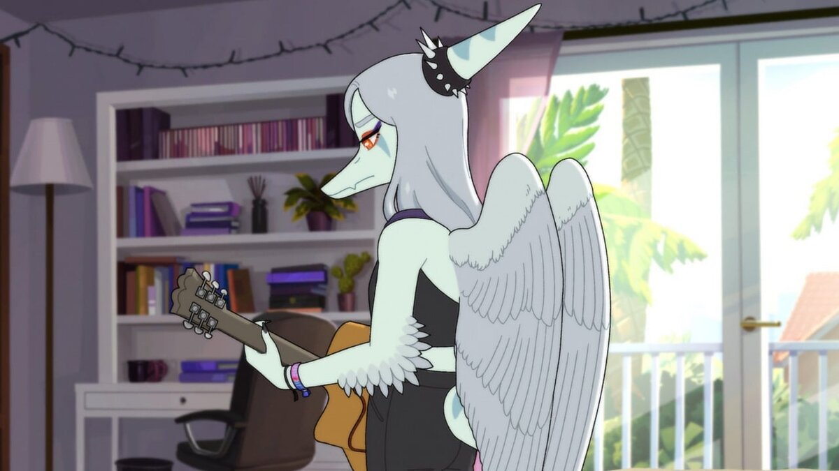 Но тут никто по этому поводу не парится, и никто никого ни в чём не убеждает. Если бы не эти режущие глаз «Я решили», «Я сказали» (да и употребляются они не всегда), я бы вообще не понял, что Клык какая-то там небинарная. Обычная неформатная девочка-гот, которая не совсем ладит с родителями и слишком правильным братом и увлечена своей рок-группой «Драма червей», где играет со школьными друзьями.