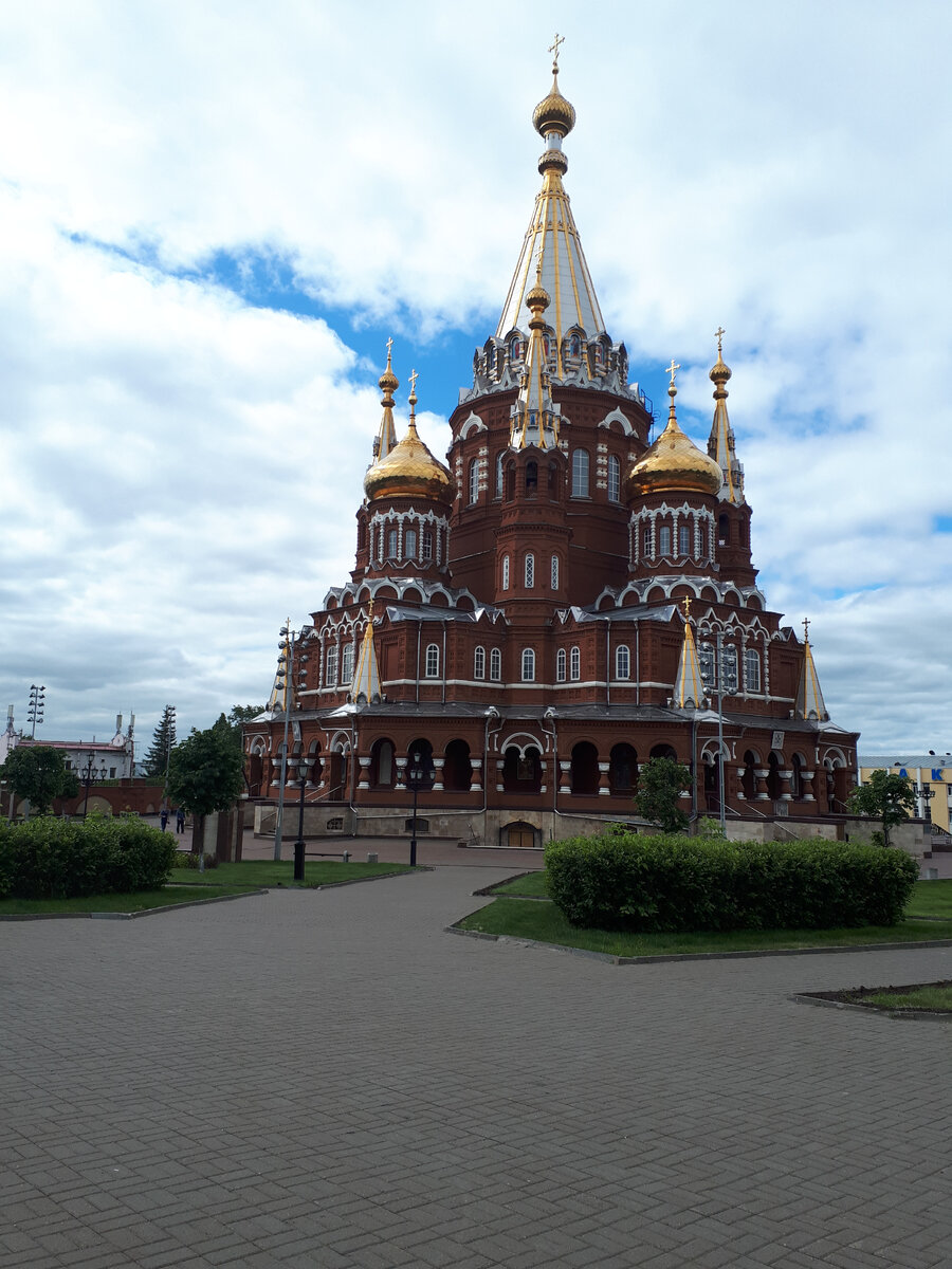 Итак, в рамках однодневного путешествия в Ижевск, мы прибыли в собор Михаила Архангела. Он поражает своим величием и великолепием. Расположен он на одной из самых высоких точек города, на Красной (Михайловской) площади. Высота собора 67 м. Он построен на возвышенности, и смотреть на все постоянно приходиться снизу вверх, что придает ещё большее ощущение Божественного величия. Внутреннее убранство соответствует внешнему облику. Очень красиво. И атмосфера какая-то особенная, даже на улице. Видимо потому, что и у площади и у собора очень непростая история. А рядом с этим чудом духовной, архитектурной и инженерной мысли находится музей М.Т. Калашникова, который стал следующим местом посещения нашей экскурсии.