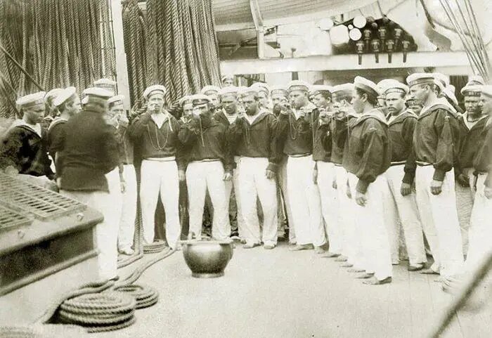 Причём, каких-либо осуждений дореволюционной традиции выдачи "хлебной чарки", не встречал. Может авторы публикаций думают, что матросам Русского Императорского флота выдавали хлеб? Нет, со времён Петра I, водка называлась хлебным вином. Причём русский Император не был первопроходцем, спиртное выдавалось матросам всех стран. Британские моряки пили ром, голландцы – пиво и джин, а испанцы - вино с лимонным соком, в России - водка была самым дешёвым продуктом из перечисленных.