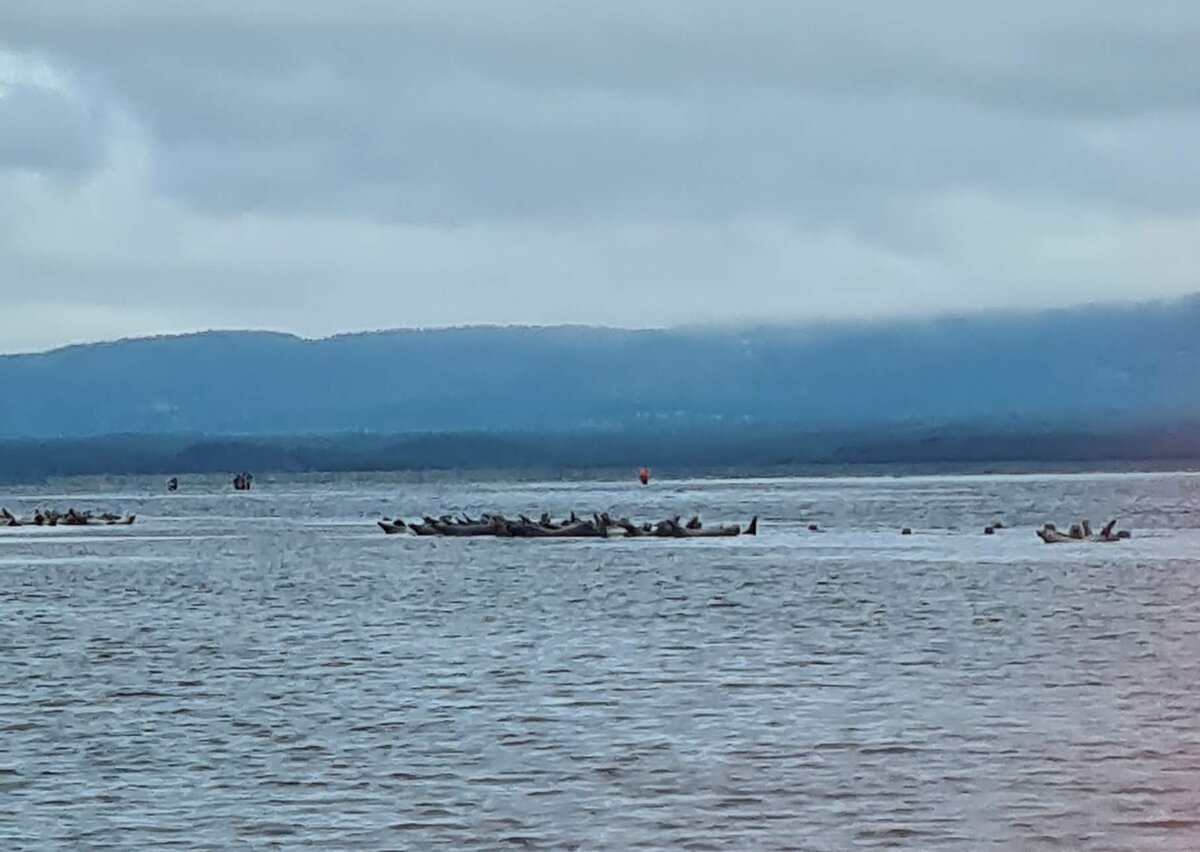 ЧАСТЬ 3. ОЗЕРО БУССЕ На фото обложки кроме собственно озера можно увидеть вездесущих сивучей, а также... собирателей устриц. А все потому, что Буссе - не только биосферный заповедник, в котором встречаются и морские млекопитающие, и краснокнижные птицы, но и место, где на устричных банках производится сбор "урожая". Но чтобы добраться до этих "плантаций", нужно полтора часа ехать из Южно-Сахалинска до Озерского, затем сворачивать на грунтовку и ещё минимум час трястись по ухабам. И все это только с экскурсией! Но мало доехать до берега озера, до устричной банки нужно добираться по воде. Сначала на катамаране (причем гребут сами туристы), а затем 1,5 км пешком. Идете узкой цепью в резиновых сапогах с голенищами до бедра вслед за проводником. А потом еще столько же, по тому же пути, но уже с добычей! Найденные устрицы можно тут же продегустировать, приправив соленой водой из озера. Но самый кайф - есть их уже на берегу в запеченом виде. Кстати, организаторы настоятельно рекомендовали