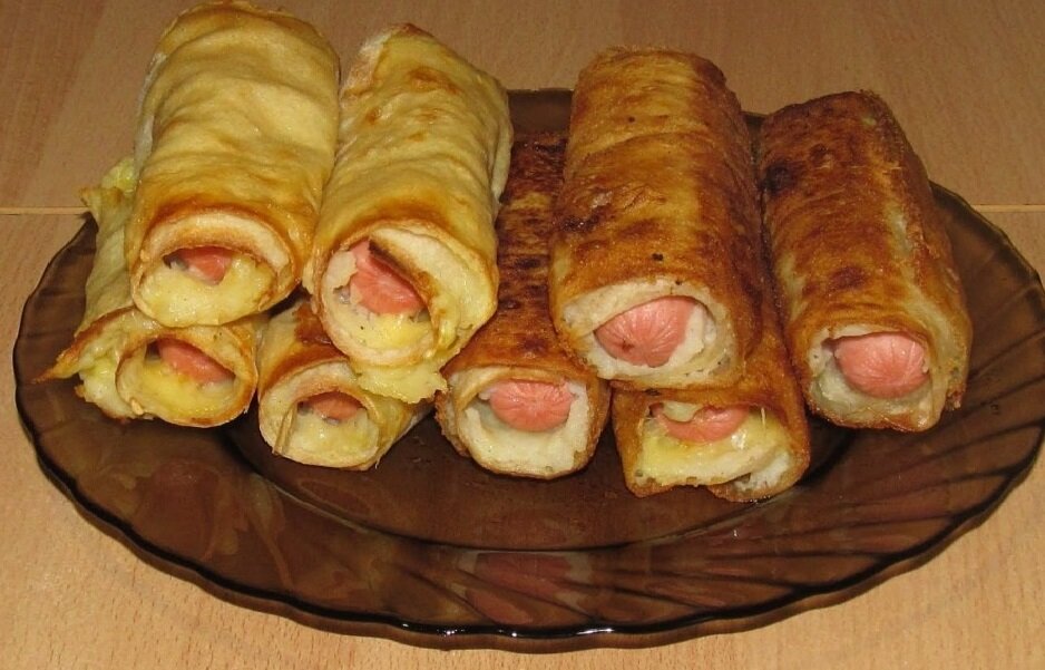 Трубочки из лаваша с сыром и сосисками