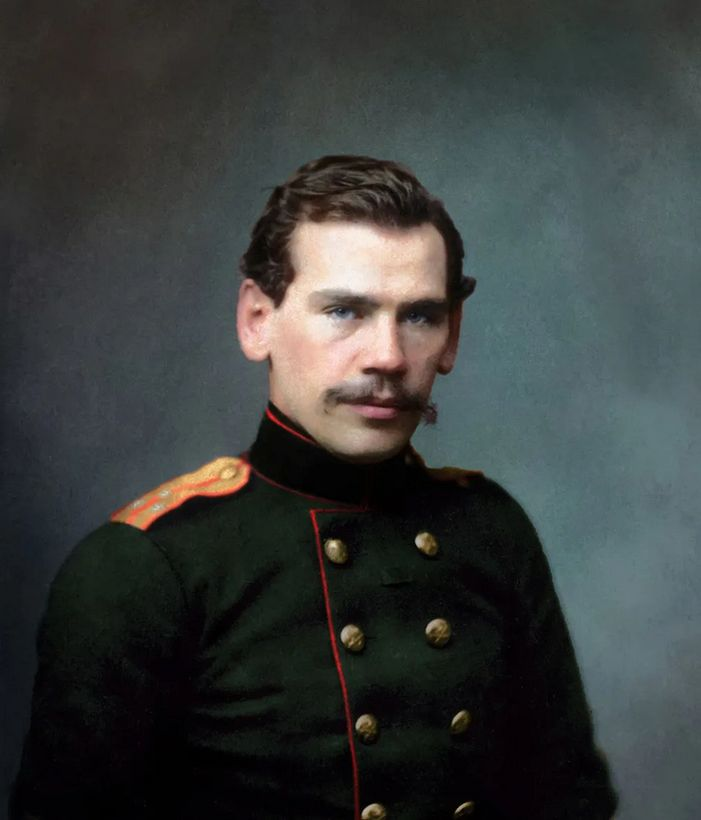 Лев Толстой — офицер артиллерии в мундире участника Крымской войны, где он воевал с Англией, Францией и другими странами НАТО. 1856 год