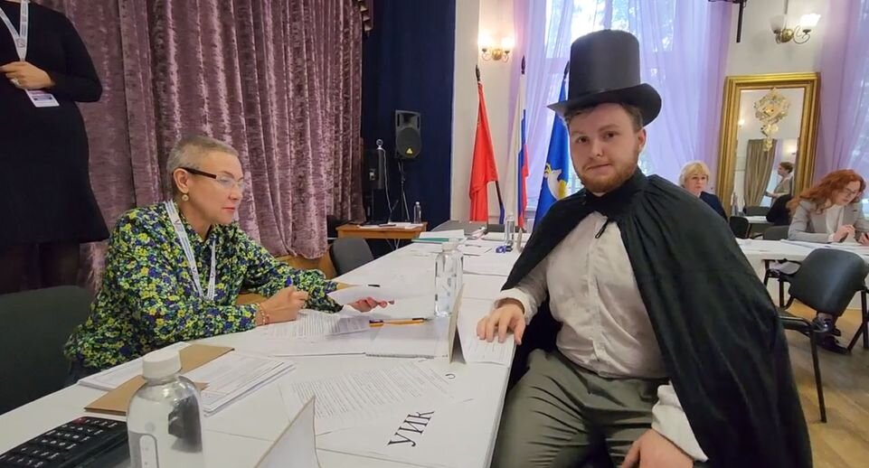 На избирательный участок в звенигородском Доме детского творчества пришел мужчина в плаще и цилиндре. Им оказался актер Егор Курышев в образе Родиона Раскольникова. На участок для голосования он заглянул в перерыве между съемками фильма по мотивам романа Достоевского «Преступление и наказание». Внешний вид мужчины произвел на присутствующих яркое впечатление. Особенно интересным был контраст между одеждой прошлой эпохи и современными устройствами, которыми актер пользовался. В этом году голосование в Подмосковье проходит интересно: на выборах то и дело появляются персонажи из книг и фильмов. Так, на выборах в Химках появился избиратель в образе крокодила Гены. До этого в Лосино-Петровский на избирательный участок пришел человек в костюме Чебурашки и раздал всем апельсины. В Егорьевске волеизъявиться решил Человек-паук. Им оказался аниматор, который решил поучаствовать в голосовании без отрыва от работы.