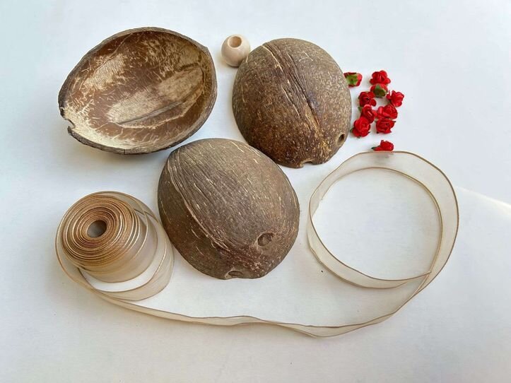 Итак, давайте посмотрим, что понадобится, чтобы сделать подвесное кашпо из скорлупы кокосовых орехов своими руками.
