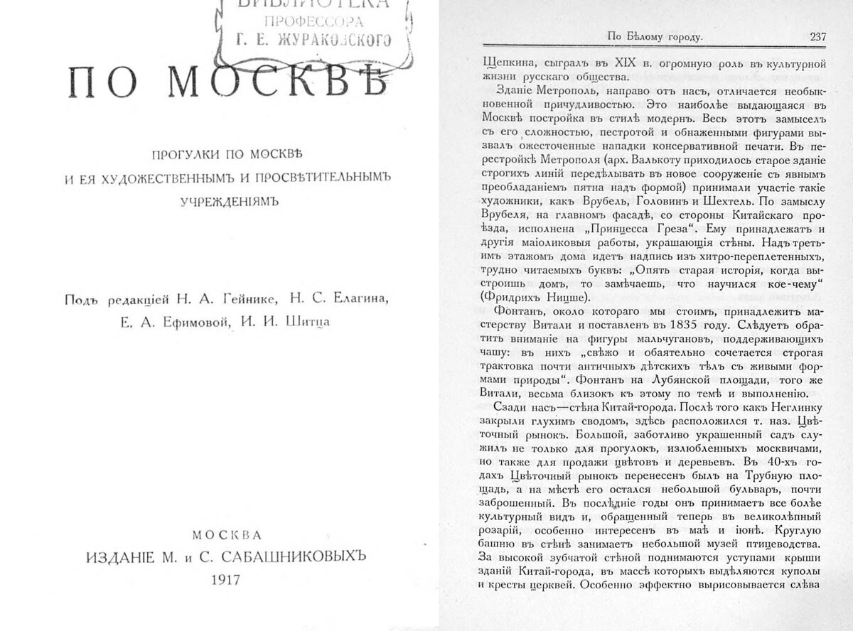 В старом московском путеводителе «Прогулки по Москве и ее художественным и просветительным учреждениям» [1917 г.] в описании гостиницы Метрополь сказано: «Над третьим этажом дома идет надпись из хитро-переплетенных, трудно читаемых букв: “Опять старая история, когда выстроишь дом, то замечаешь, что научился кое-чему” (Фридрих Ницше)». Попробуем разобраться, где находится эта надпись на фасаде Метрополя. Тем более, что в интернете можно встретить утверждение, что оригинальная надпись не сохранилась и заменена на цитату В.И.Ленина. Аналогичное мнение я слышал на экскурсии одного очень уважаемого эксперта по архитектуре и истории нашего города.