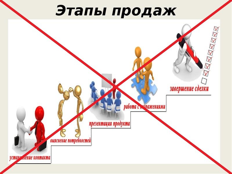 Как распознать продавца-любителя? Легко: он все время продает! Он не умеет знакомиться, спрашивать, выявлять, слушать... Он просто продает. Вернее, пытается со страшной силой, но в этом лабиринте большого ассортимента, услуг, клиентов и конкурентов ему слегка не везет. Он все делает правильно (если не верите, сами спросите у него), но его товар очень «специфический», и покупатель очень «своеобразный», и... Нет продавцов, которые хорошо «заключают договоры», есть только продавцы, которые умело работают на всех этапах продаж: 1. Подготовка 2. Установление контакта 3. Определение потребностей 4. Презентация решения для клиента 5. Работа с возражениями 6. Заключение сделки 7. Сопровождение клиента В классических книгах продаж Вы найдете только 5 этапов продаж, а вот первый и последний (Подготовка и Сопровождение клиента) – многие продавцы упускают.