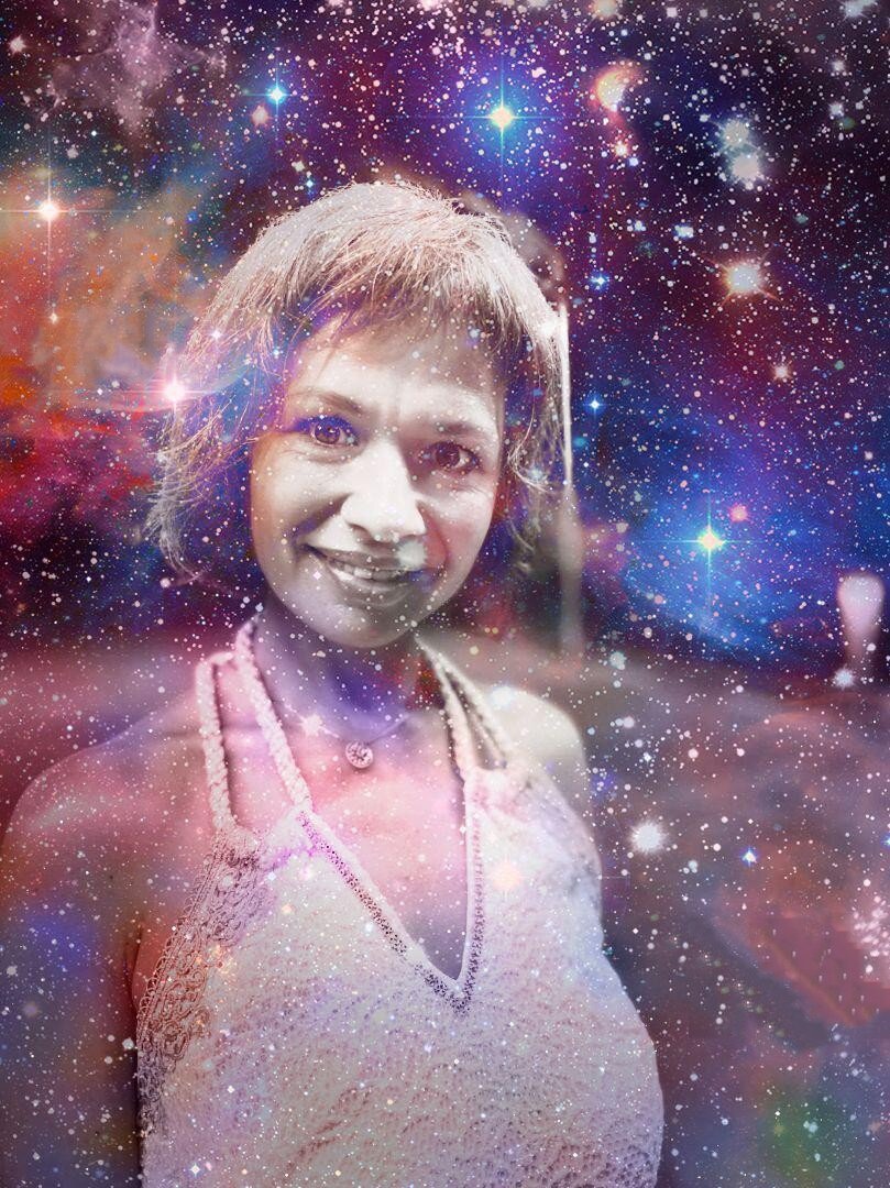 Я — это всё пространство вокруг, включая звёздное небо и людей, и Оксану, что сейчас сидит и улыбается во все 32 зуба белоснежной улыбкой в ночи. Словно замерла.