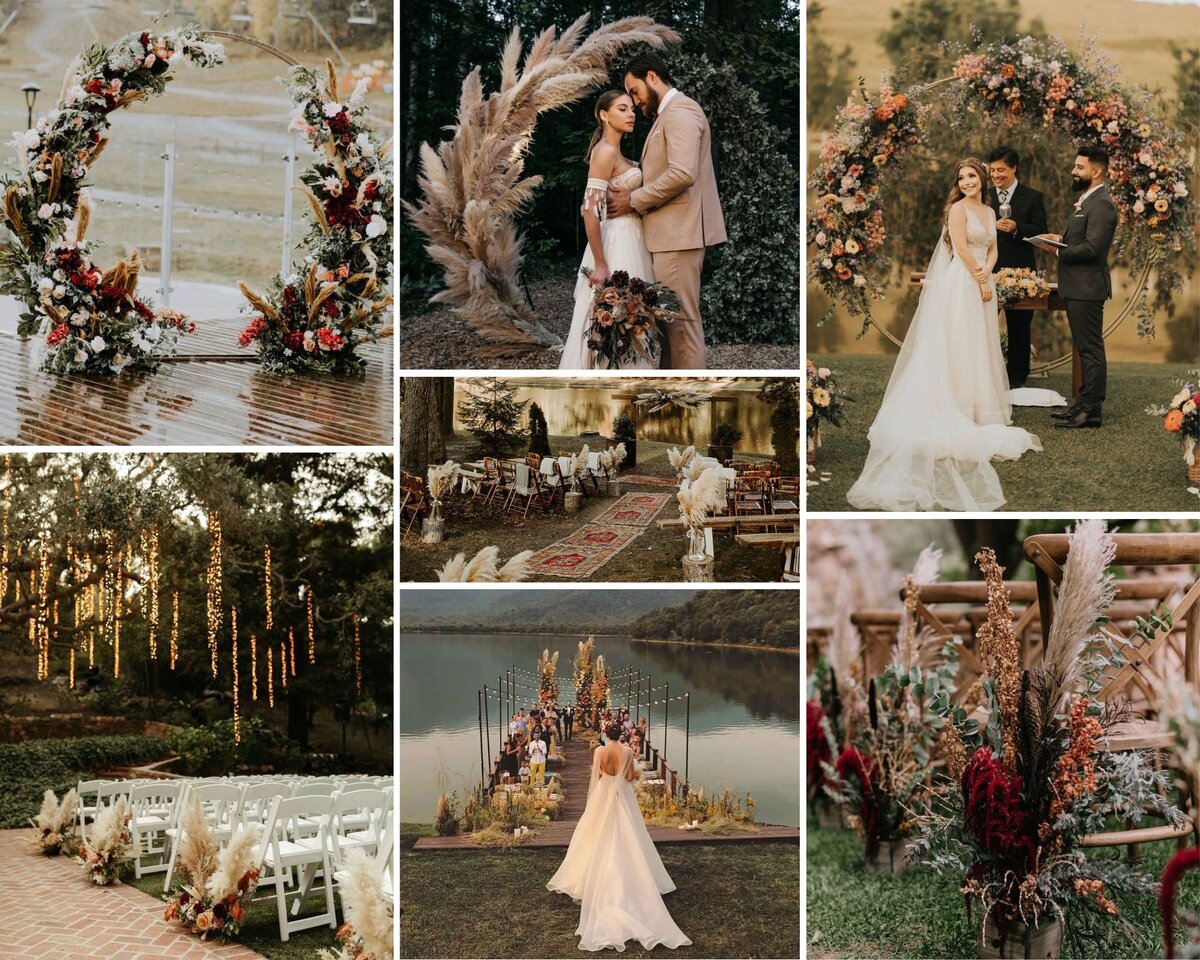 Идеи декора осеннего мероприятия. У многих осень ассоциируется с прохладным, пасмурным и дождливым временем года. Но мы считаем, что именно осенние мероприятия обладают особой теплотой, уютом и атмосферой. Мы решили поделиться с вами идеями декора, чтобы вам было проще создать ту самую атмосферу. 1. ЦЕРЕМОНИЯ Идеальный вариант для свадьбы осенью, это — церемония на природе. Живописные виды радуют теплыми и уютными акцентами. В такой атмосфере есть свой особый шарм, которым наградили именно осенние месяцы года. Это возможность заключить брак и произнести трогательные клятвы не в привычном ЗАГСе, а на том фоне, который нравится именно вам и вашей половине. 2. ВЫБОР ПЛОЩАДКИ Осень — это, конечно, чистый воздух и прекрасная природа. Но погода в это время очень непредсказуема. Поэтому мы советуем выбирать закрытую и атмосферную площадку: это может быть зал с камином или старинная усадьба. 3. ДЕТАЛИ Детали играют важную роль в организации любого мероприятия, ведь именно правильно подоб