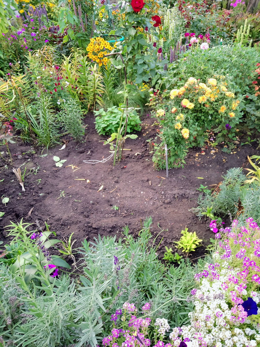 А точнее из старых цветников делаю новые. Сегодня я вообще целый день, с раннего утра, копала, выкапывала, сажала, пересаживала. Гладиолусы всё убрала, отдала соседке, место освободидось, тут уже посажены лилейники от Татьяны и флокс, вот думаю пересадить сюда Монарду, у меня теперь её много. Это колесо трогать не буду, задекорирую, вокруг посадила спиреи. Здесь весной посеяла солнцецвет, долго не всходил , теперь заросли, ничего трогать не буду. Вдоль трубы посажу очитки вартегатные и один темный. У дороги убрала последнее колесо, в котором росла гипсофила, посажу сюда барбарис. Тут всё перекопала, выбирала руками кислицу, а потом пос,адила ирисы, синие и желтые. Все астильбы, а их у меня теперь 19 штук, убрала из большого цветника. Посадила их все сюда, на фото ещё не все пересажены. Завтра сюда же посажу г-ру Пурпурный замок, хосты и новый цветник будет завершон. У дороги с другой стороны выкопала весь лук слизун и выкинула, посадила укорененные черенки. калина Пузырепл