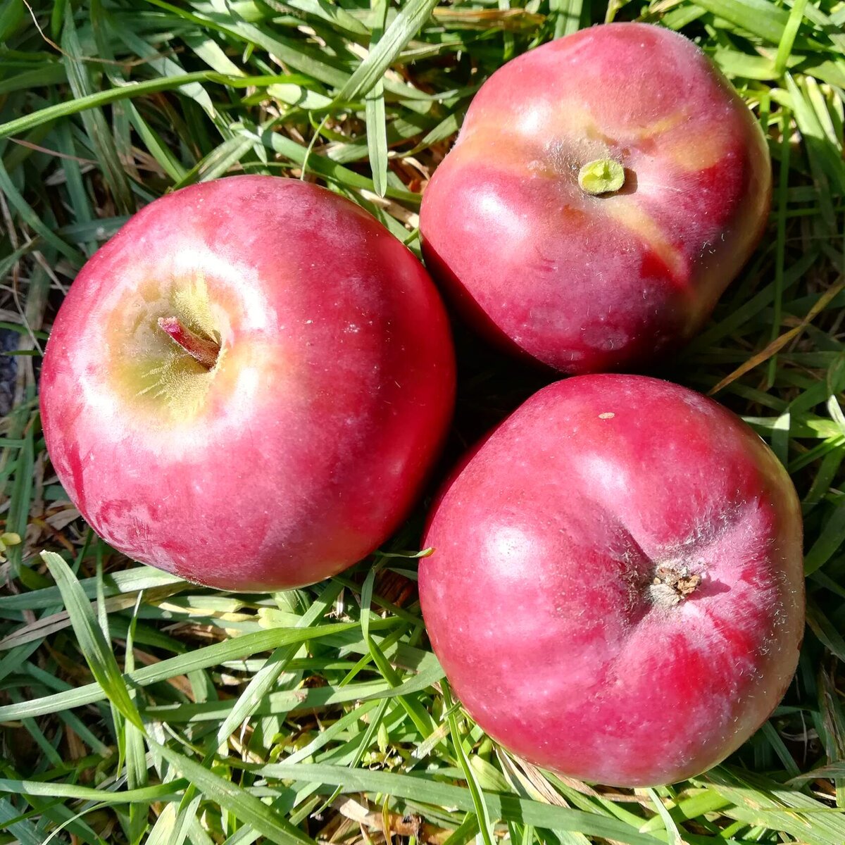 КВ краснолистная (селекции М.Ф.Монахос, Краснодар), 10 сентября 2023. Сорт плодоносит несколько лет подряд на зимостойком краснолистном штамбообразователе, в открытой кроне, на уровне чуть выше 1,5 метров от земли. Мякоть ярко окрашена. Обычный яблочный вкус, кисло-сладкий. Ничуть не кислей алтайских полукультурок. Антоциановые сорта колонны. Александр Кузнецовваш канал"Замолвите слово"... о яблоне Недзвецкого.