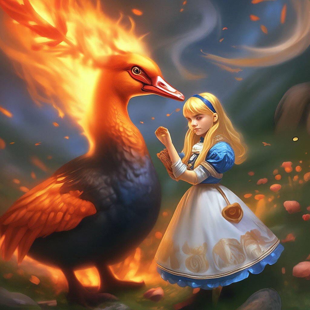 Алиса начала следить за Гусищем и увидела, как он извергает пламя. Она решила изучить его поведение и понять, как он может использовать свою силу. Она начала наблюдать за ним и заметила, что Гусище был очень дружелюбным и ласковым. Он любил играть с Алисой и даже научил ее летать.