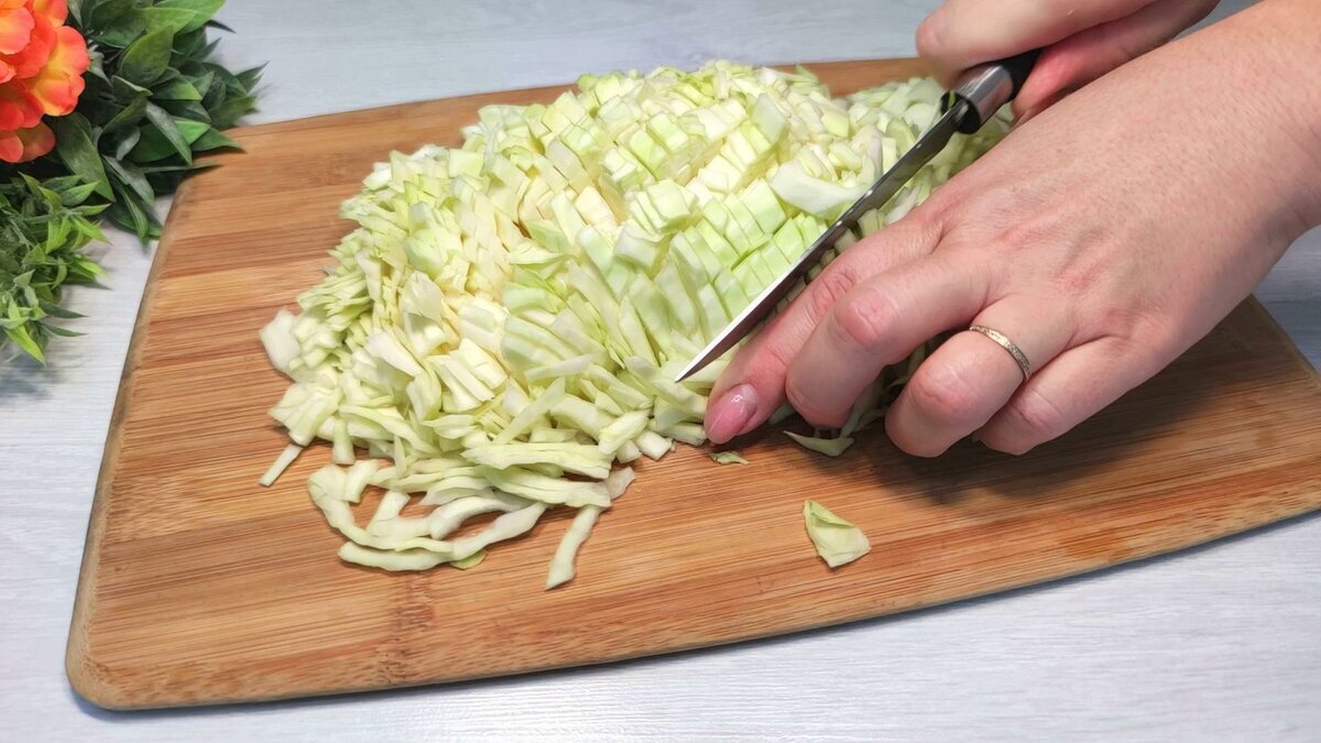 Сегодня поделюсь с вами рецептом из капусты, который готовится ну просто на раз! Если у вас дома есть капуста, обязательно попробуйте приготовить ее по данному рецепту. Это блюдо я готовлю обычно на завтраки или ужины. Сытная сковорода еды разлетается за трапезой в нашей семье просто за считанные минуты!👍 Здравствуйте, уважаемые читатели! Меня зовут Дарья, я приветствую вас на моем кулинарном канале! Список необходимых ингредиентов для приготовления данного рецепта вы найдете в первом комментарии в конце этой статьи. Переходим к приготовлению:😉 1. Шинкую капусту и кладу ее в глубокую миску, заливаю кипятком. Оставляю капусту постоять на 10 минут. 2. Откидываю капусту на дуршлаг и даю ей хорошенько стечь. 3. Добавляю соль, смесь перцев и сладкую паприку. 4. Разбиваю я