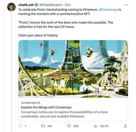 Оказалось, что злоумышленник, заполучивший доступ к учётной записи Виталика, опубликовал сообщение о бесплатной раздаче NFT в честь выхода обновления в сети Ethereum. Пользователи Твиттера, которые перешли по указанной ссылке и привязали свои криптокошельки, потеряли все цифровые активы.