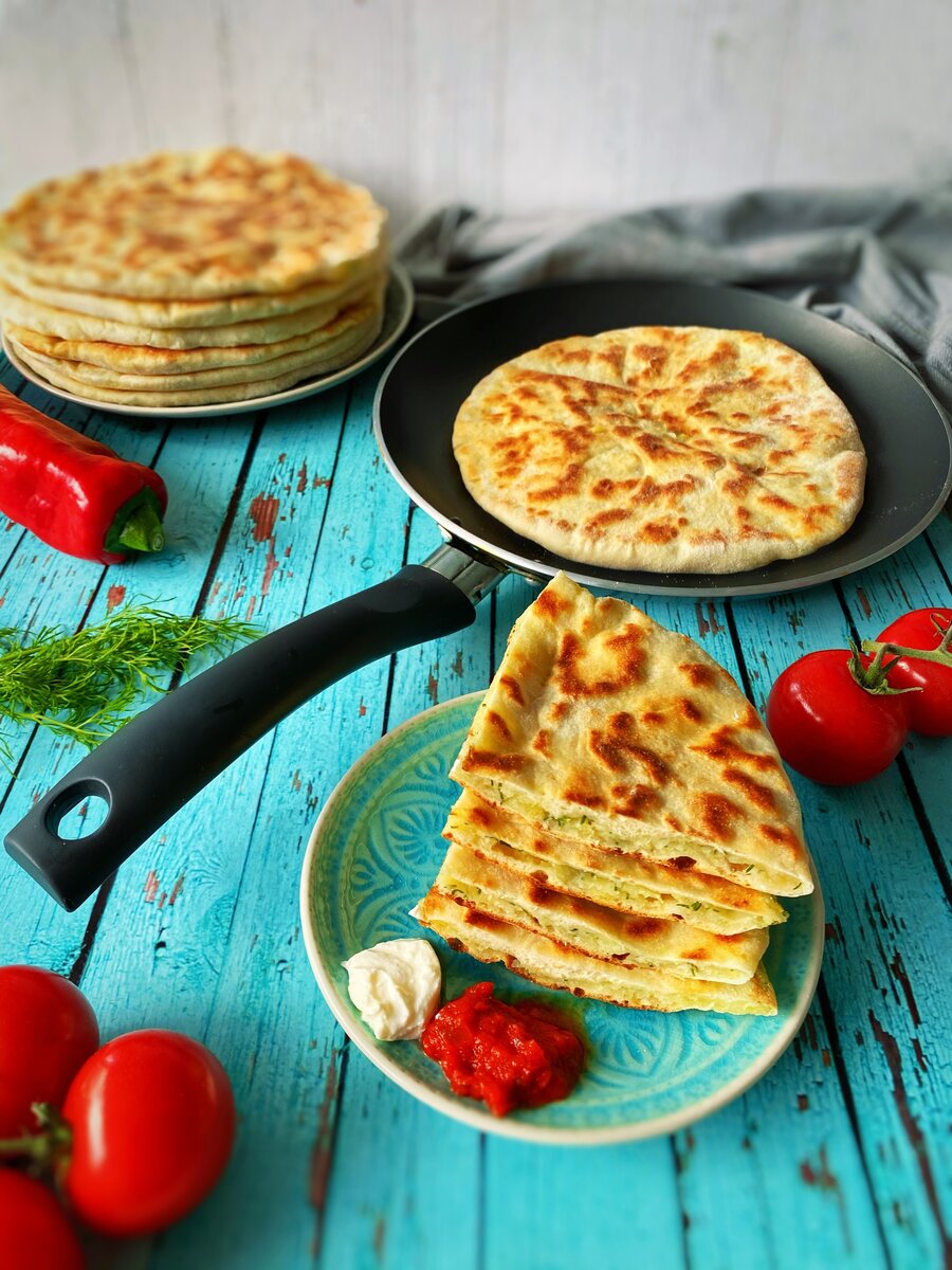 Хычины - национальное блюдо карачаево-балкарских народов, представляющее собой круглую лепешку из пресного теста с разными начинками. Подаётся на стол в горячем виде со сливочным маслом или домашней сметаной. Главный секрет - это правильно приготовленное тесто! ⠀ ⠀◽️Для приготовления теста нам необходимо: 🔸 300 мл. кефира (или айрана) комнатной температуры вылить в небольшую ёмкость 🔸 добавить 1 ч.л. соли и 1/2 ч.л. соды и всё хорошо перемешать 🔸 к кефиру постепенно добавляем просеянную муку, примерно 400 г 🔸 вымешиваем тесто - оно должно быть тягучим и не прилипать к рукам (если добавить много муки, то тесто будет жестким и не вкусным) 🔸 накрываем тесто полотенцем или плёнкой и отставляем на 30-40 минут. ⠀ ⠀◽️А мы пока приготовим начинку: 🔸 500 г отварного картофеля (желательно в мундире), чистим и делаем пюре 🔸 адыгейский сыр - 400-500 г трём на крупной терке и добавляем к картофельному пюре 🔸 50 г свежей зелени (петрушка, укроп) мелко шинкуем и добавляем в начинку. ⠀ ⠀🔹Сма