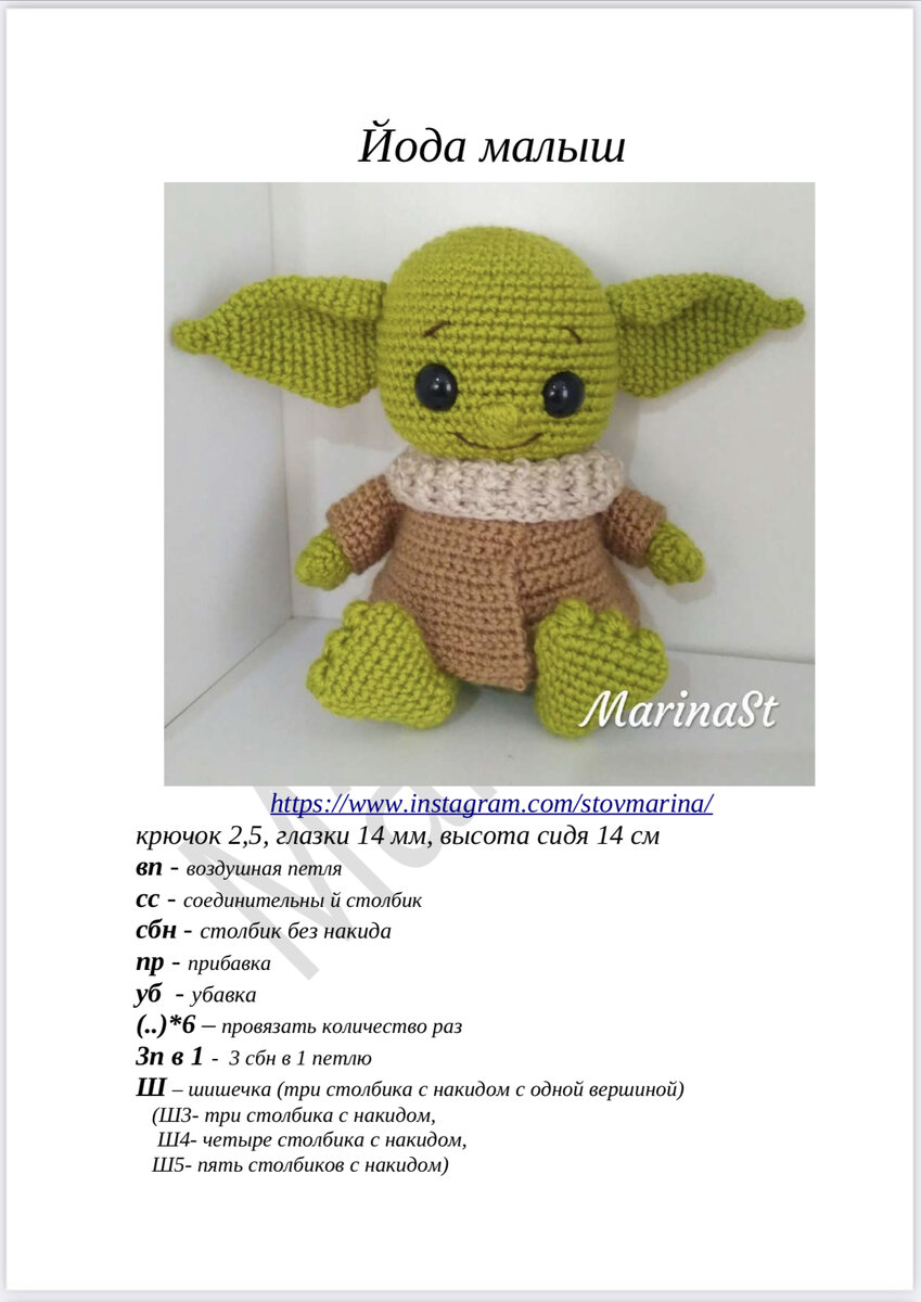 Малыш Йода крючком. Описание вязания.