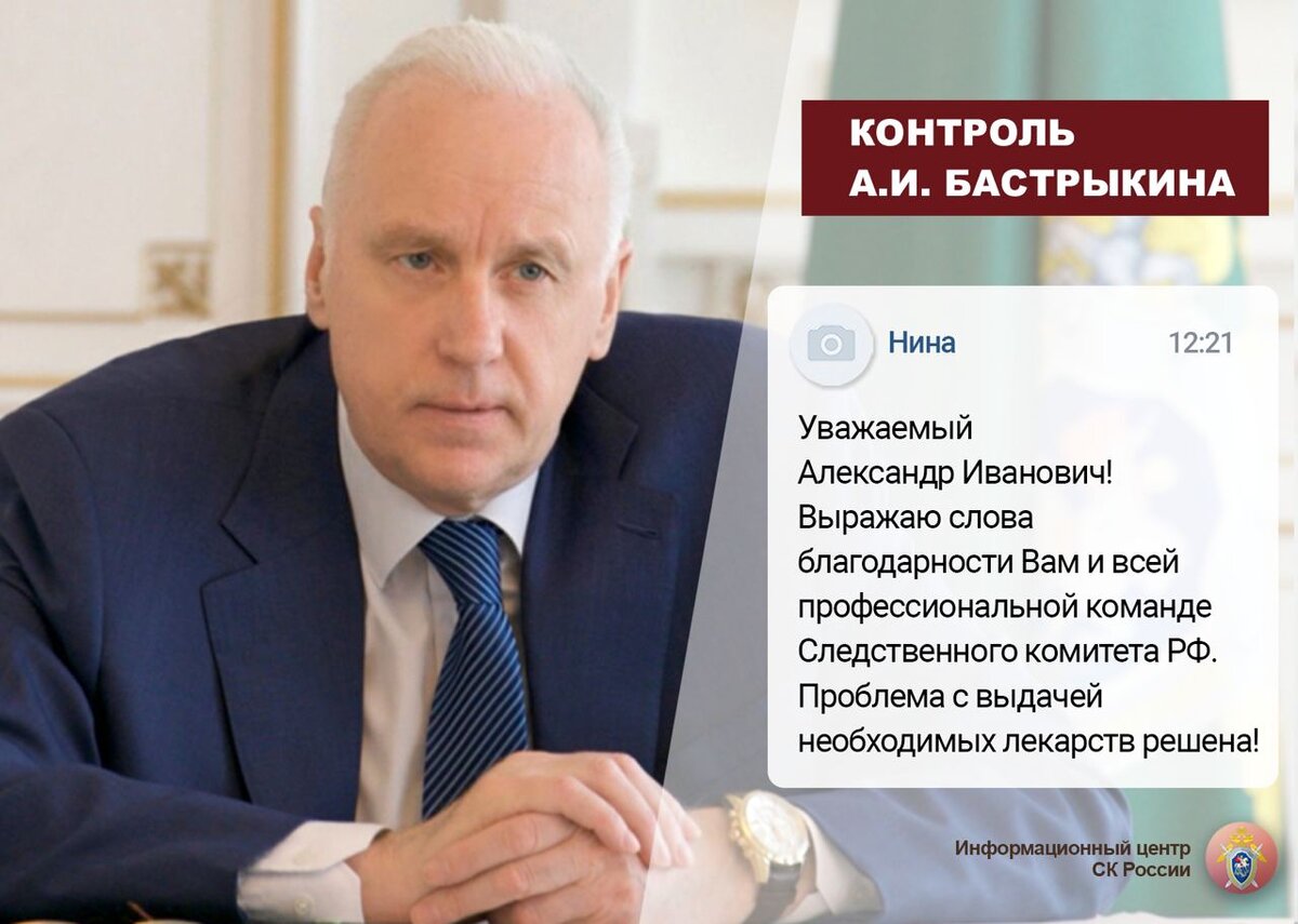 Она уже собиралась их смахнуть, но случайно открыла одно из них. Это было изображение со словами благодарности Председателю Следственного комитета Российской Федерации Александру Ивановичу Бастрыкину за помощь в получении лекарств тяже