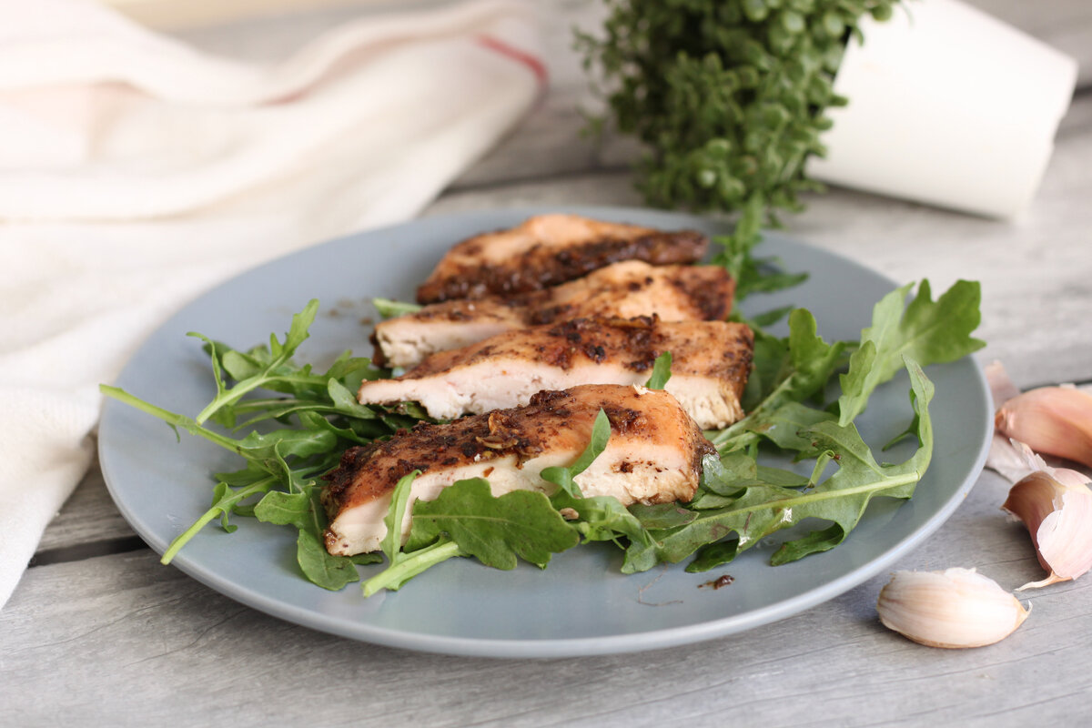 Существует много рецептов приготовления куриной грудки. Предлагаю отличный рецепт. Нужно совсем немного ингредиентов, и это правда. А то как бывает - читаешь название поста в Дзене - простое блюдо из 2х ингредиентов, а по факту их оказывается 22. Итак, куриное филе нарезать на порционные кусочки. Не нужно делать их совсем мелкими. Можно, как на фото, а можно разрезать еще пополам. В миске смешать масло, соевый соус, измельченный чеснок и специи до однородности. Выложить филе в форму для запекания, залить приготовленным соусом. Запекать 40 минут при 180 градусах. Ингредиенты: Куриная грудка - 700-800 г