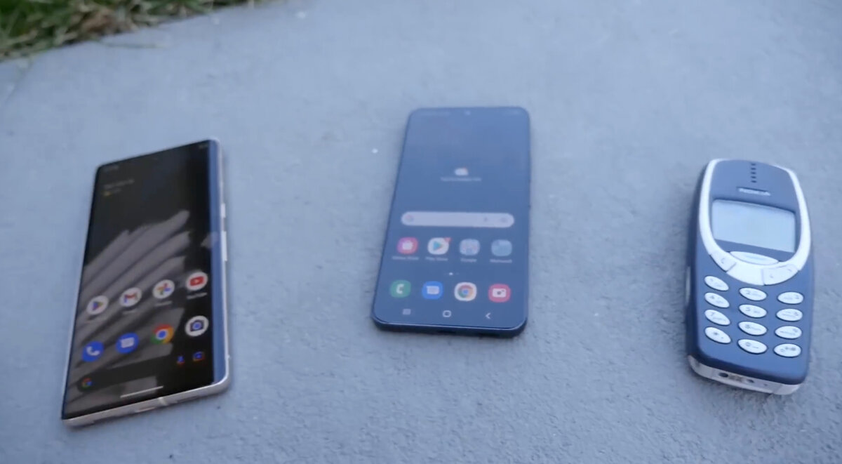В этот раз заокеанские братья по разуму решили пострелять по смартфонам премиального уровня, добавив в общую кучу вечный мобильник на все времена Nokia 3310. В качестве мишеней были выбраны Google Pixel 7 Pro, Samsung Galaxy S22 и, конечно же, любимый всеми iPhone 14 Pro. Который раз уже флагман от Apple попадает под раздачу этой заокеанской команды, явно демонстрируя любовь к iPhone 14 Pro. Насколько я смог заметить стрельба велась из 9 мм пистолета системы Глок. При простреле iPhone 14 Pro аппарат не разлетелся вдребезги. Пуля прошла навылет, оставив ровное входное отверстие и «розочку» из металла на тыльной стороне. Galaxy s22 при простреле задымился, чем очередной раз продемонстрировал ненадёжность своего аккумулятора. Как-то на канале было опубликовано видео с протыканием аккумуляторов смартфонов, где аккумулятор Samsung Galaxy повел себя наихудшим образом - он загорелся, что в свою очередь говорит о ненадёжности внутренних компонент устройств Samsung, которые в случае повреждения