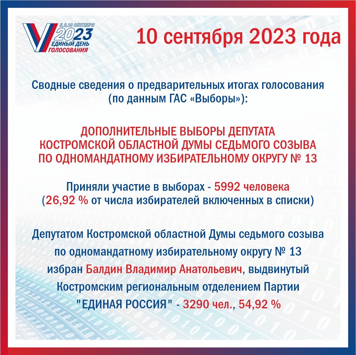 Предварительные итоги голосования на выборах 10 сентября 2023 года