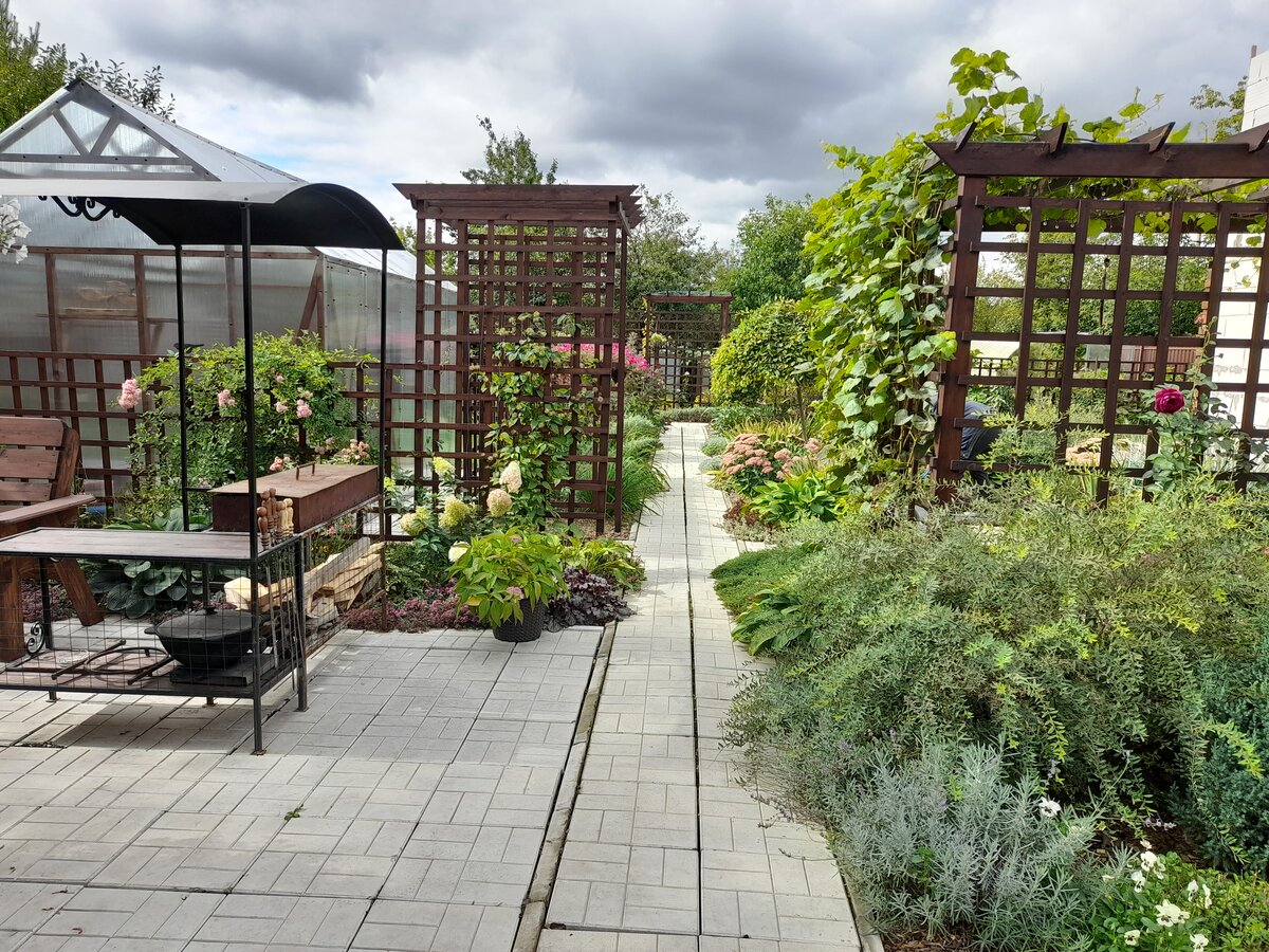 В конце августа мы вернулись жить в квартиру. На даче были только по выходным и прибегали вечером поливать цветы в кашпо. Всю текущую рабочую неделю муж работал на соседнем участке и поливал все сам. Я наблюдала за дачей только через камеру видеонаблюдения. Наступила суббота и я в своем саду. Вроде бы ничего сильно не изменилось. Погода теплая. Но уже чувствуется осень. Морозов у нас еще не было. Сад цветет и пахнет. Розовеют очитки. Газон ждет покоса. Зацвели молодые клематисы. На альпийской горке появились безвременники. Весь сад стал в спокойных розово-бордовых тонах с вспышками желтого цвета.