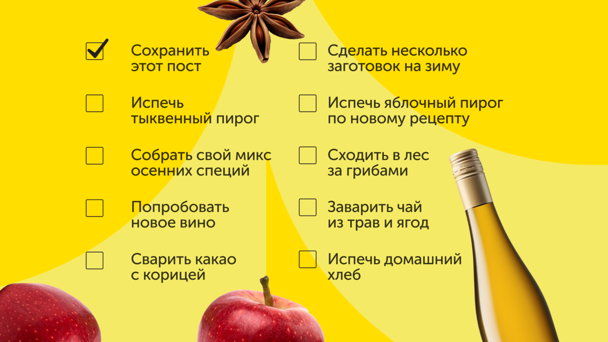 Осень только начинается, но зарядиться сентябрьским настроением, добавить в жизнь больше уюта и новых вкусов — хочется уже сейчас. Ловите чек-лист с кулинарными идеями от нашей редакции!