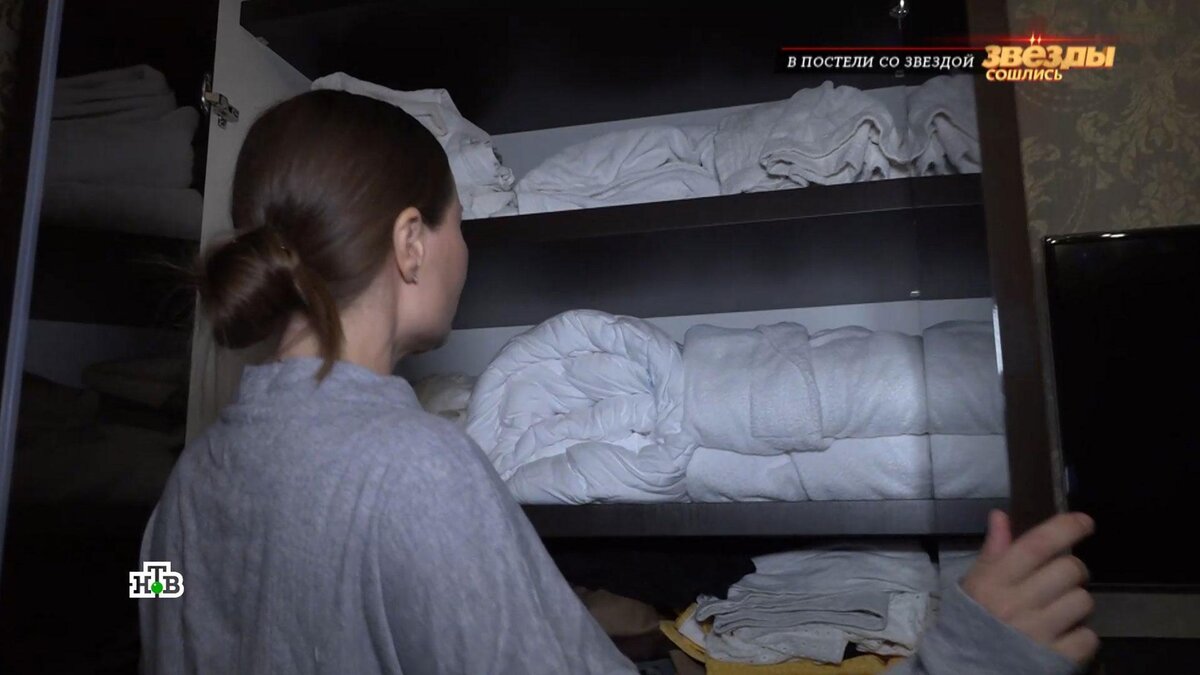 [ Смотреть видео на сайте НТВ ] Телеведущая и актриса Юлия Михалкова любит красивые шелковые пижамы для сна и пушистые махровые халаты, которые звезда нередко увозит из отелей. Спальня Михалковой напоминает номер дорогой гостиницы: кровать с позолоченным изголовьем, вензеля на стенах, классические бра и дубовые тумбочки у огромной кровати. Юлия Михалкова, актриса и телеведущая: «Я не знаю, как белые халаты оказались в моем шкафу. В гостиницах бывает так, что халат после душа я бросаю на кровать, где уже навалены другие вещи. Наверное, как-то так халат попадает в чемодан, потом уже дома я его обнаруживаю». Лариса Рубальская, поэтесса: «Я всегда из гостиниц тапочки забираю. Я езжу со своими тапочками, люблю чуть приподнятую обувь, а гостиничные домой привожу. У меня помощница есть, она очень любит подарки. Отельные тапочки используются как гостевые». Артист Владимир Девятов признался, что раньше из гостиниц вез все что можно. Владимир Девятов: «Шампуни везли, зубные щетки и пасты, но сей