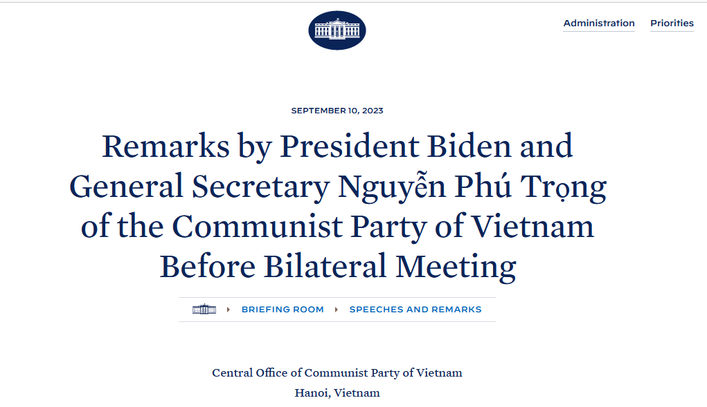 Выступления президента Байдена и генерального секретаря Коммунистической партии Вьетнама перед началом двусторонней встречи