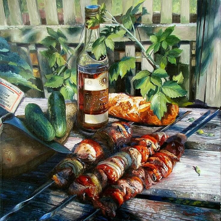 Возвращаясь к событиям того дня, он воспроизвёл следующую картинку... Быстро развели мангал, время от времени прерываясь на выпить за встречу, за знакомство, за хорошее настроение... и много ещё за что... Шашлык румянился на шампурах, источая приятный аромат мяса и специй. Из магнитофона доносились хитовые песни Жанны Агузаровой Алёны Апиной, Андрея Державина. Отдыхалось легко и непринуждённо.