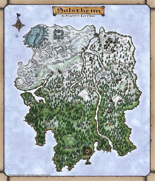 Солстхейм - это большой остров в Море Призраков к северу от Тамриэля. Первыми его обитателями были снежные эльфы, построившие здесь множество великих поселений, которые намного превзошли их материковые владения. В 4Э 16 он официально стал регионом Морровинда. Остров имеет долгую историю заселения другими расами, но традиционно на нем преобладает нордское влияние