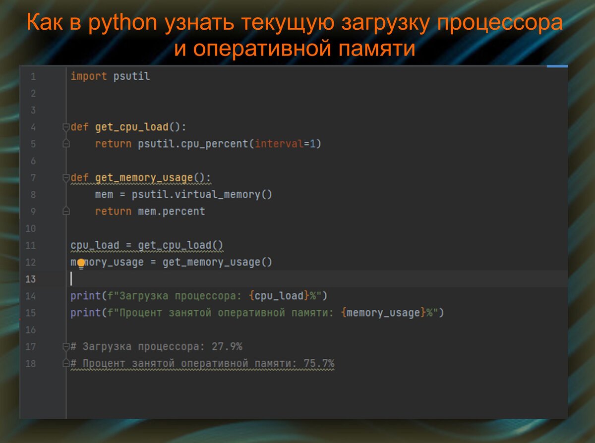 ``` Текстовка кода доступна по ссылке: https://sergsergius.ru/forum/topic/%d0%ba%d0%b0%d0%ba-%d0%b2-python-%d1%83%d0%b7%d0%bd%d0%b0%d1%82%d1%8c-%d0%b7%d0%b0%d0%b3%d1%80%d1%83%d0%b7%d0%ba%d1%83-%d0%bf%d1%80%d0%be%d1%86%d0%b5%d1%81%d1%81%d0%be%d1%80%d0%b0-%d0%b8-%d0%bf%d1%80/#postid-107