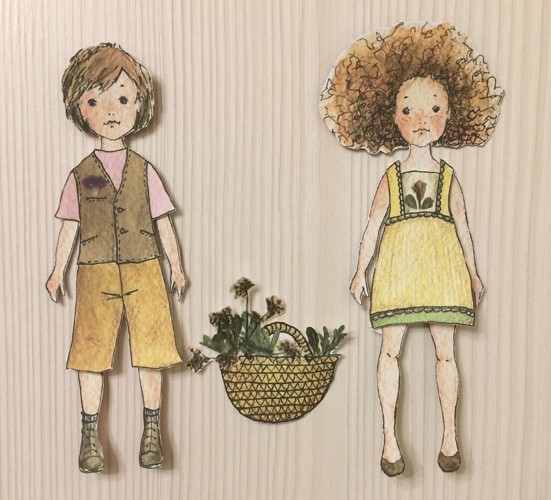 Как ни крути, а лето от нас все дальше. С одной стороны, это грустно, но с другой - оно же остается в наших воспоминаниях, из которых можно черпать вдохновение до следующего года. Вот таким маленьким источником летнего настроения мне служат куклы, которых я вам сегодня хочу показать. Куклы эти авторские, их нарисовала Екатерина Зубенко. Знакомьтесь, Мелисса и Оливер: А также Оливия... ...и малышка Хлоя: (на кадре выше Хлоя стесняется и поэтому натянула по самый нос мамину шляпу) Особенность кукол в том, что для украшения их гардероба использован настоящий гербарий. Малюсенькие цветочки и листочки так здорово вписаны в нарисованную одежду, меня это невозможно умиляет. Давайте рассмотрим подробнее. Хлоя (листайте галерею!): Оливия: Оливер: И, наконец, одуванчик Мелисса: Мне нравится эстетика Екатерины, неяркие приглушенные цвета, простые и вместе с тем интересные фасоны. У девочек есть еще уютный осенний гардероб, но его я покажу как-нибудь в другой раз, и так, наверное, утомила вас сего