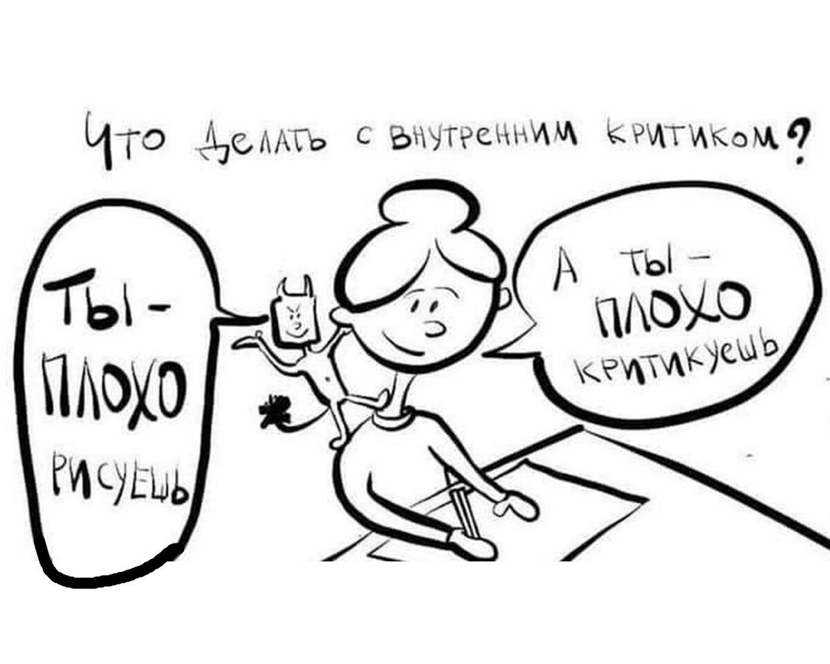 – У тебя ничего не получится – Могло быть и лучше – А вот другие делают иначе/лучше – Да кому это нужно Голос внутреннего критика суровый, ехидный. От него не скрыться, ведь он живет в вашей голове. Всегда рядом, зорко следит за вашими чувствами, мыслями, поступками. Комментирует их в своей узнаваемой жалящей манере. Возвращает на землю, чтобы вы не витали в облаках, в мире нелепых желаний. Методично и регулярно подрезает вам крылья, обесценивает, приземляет. Это больно, зато вроде как «правда жизни». Кто же он? Строгий, но справедливый судья, выносящий вердикт? Советник, который указывает на ошибки и направляет нас? Или безжалостный прокурор, чья цель – наказать? ВСЕ МЫ РОДОМ ИЗ ДЕТСТВА Внутренний критик формируется в детстве. Это собирательный образ важных для нас взрослых: родителей, бабушек, дедушек, воспитателей, учителей. Их высказывания и слова соединились в одну фигуру внутри нас, так называемого «внутреннего критика» или «критикующего взрослого». На самом деле мы думаем