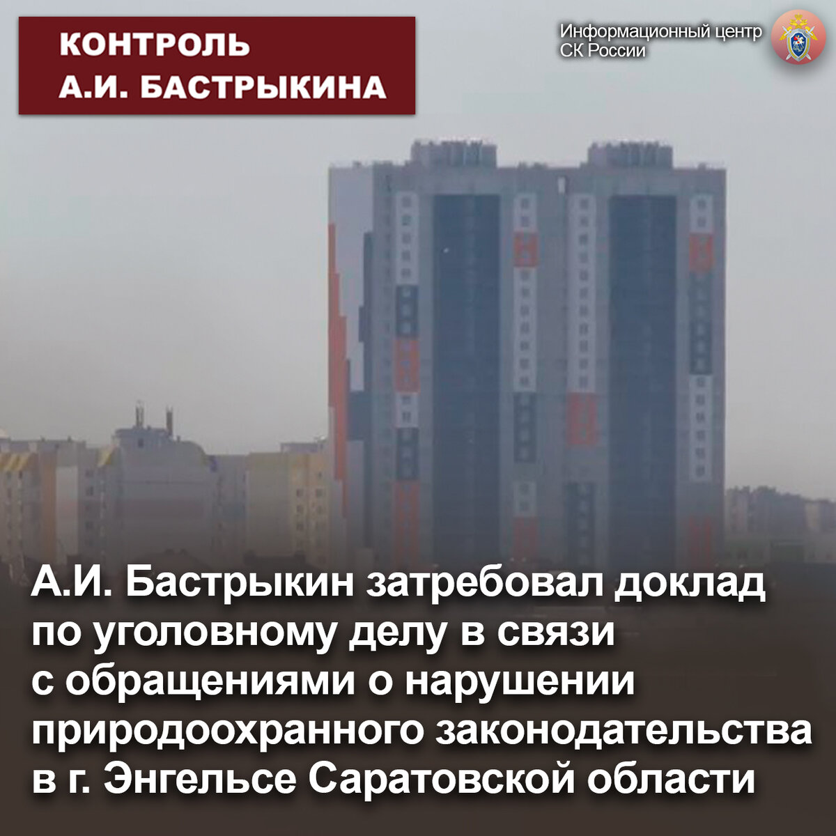 А.И. Бастрыкин затребовал доклад по уголовному делу в связи с обращениями о нарушении природоохранного законодательства в г. Энгельсе Саратовской области