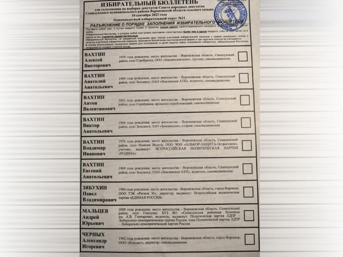 В Семилуках выборы между шестью Вахтиными и еще тремя кандидатам в депутаты завершились победой Черных