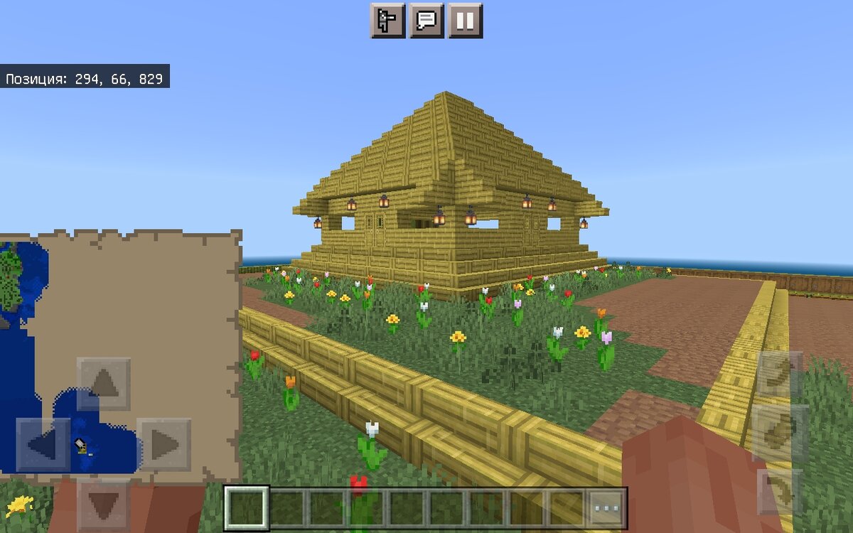 Здравствуйте, читатели. СЕГОДНЯ впервые за долгое время я пишу статью. Прошу прощения за долгий неактив. У меня было мало времени из-за уроков. А в свободное время ничего не хотелось делать. Теперь перехожу к сути статьи. В предыдущей статье... Дизайнерсоке оформление того дома. "Склад", про который я говорил. Это ремесленное крыло острова. Здесь работают жители. А теперь перейду к новой постройке. Ну как новой... Самой последней, будет точнее. В поисках островов я нашёл очень маленький клочок земли. На нём было нельзя построить ничего громоздкого. Поэтому первой задачей было эту проблему устранить. Вот такое вот решение у меня получилось. С этим я достаточно долго мучался, так как красный песок падает до последнего. Пришлось зысыпать этим стройматериалом небольшую, на первый взгляд, часть морского дна. Затем я положил вот такие вот брёвна. Сможете ли угадать, что именно я хотел построить? Вообще я думал сделать это здание побольше. Но по правилам, дом нудно строить в трёх