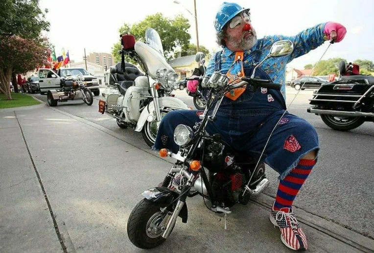 1. Очень нестыдно быть клоуном на смешном минибайке по выходным. Гораздо страшнее оставаться полным клоуном в будни, и вести себя подобным образом в других контекстах, при этом не понимая всей трагичности происходящего. Просто ещё один кандидат на звание самого харизматичного циркового артиста на мотобайке! 2. Ну, что может случиться в обычный воскресный день с прилежным зайкой на мотоцикле? Да всё что угодно! Например, он может быть остановлен и привлечён к ответственности за езду на байке без шлема. Разве можно быть таким беспечным животным и рассекать на двухколёсной технике без средств индивидуальной защиты?! 3. Когда в очередных новостях трубят о преимуществах автомобилей над мотоциклами, хочется просто взять и привести в пример вот такой мотоцикл из будущего, который уже на электротяге и отлично приспособлен для экономичного использования. Ну, просто пушка какая-то по сравнению с устаревшей техникой из прошлого! 4. Как появилась эта фотографии? Неужели водителю интересен друго