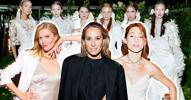 А модный дом Valentin Yudashkin тем временем собрал друзей на показ свадебной коллекции бренда. Не друзья и не доехали бы — показ проходил в самой глубине Лужников в романтичной цветочной ротонде среди киосков, палаток и павильонов проходящего там Московского урбанистического форума. Дойти туда в ледяной вечерней прохладе минувшего четверга смогли самые стойкие, хуже было только посетителям форума, сидевшим на лекции по химии или катавшимся в небольшом уличном бассейне на сапах: у них не было ни просекко, ни обогревателей. Но на них также не было и шпилек. Гости рассаживались впечатленные.