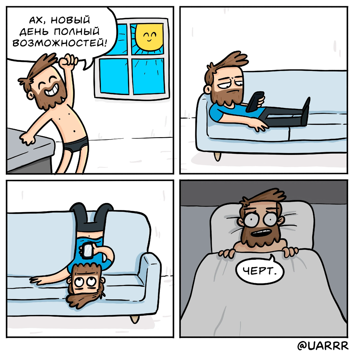 Всегда интересно узнавать, чем занимаются художники комиксов помимо, собственно, рисования комиксов. Да, к сожалению, реалии таковы, что для многих авторов рисование остается всего лишь хобби, а не способом заработка. К счастью, далеко не для всех - это какая-то проблема. Многим просто нравиться иногда порисовать что-то для себя. К примеру, герой сегодняшней статьи по профессии дизайнер, причем этим делом он очень сильно увлечен, что можно заметить по постам в соцсетях. Но комиксы он тоже рисует - просто так, для себя и на потеху публике. Получается здорово, так что я решил сегодня вам эти комиксы показать. Надеюсь, что они вам понравятся! UARRR - это творческий псевдоним немецкого художника Марселя Вихманна (Marcel Wichmann). Марсель живет в Берлине, профессионально занимается дизайном и более 15 лет ведет блог на эту тему. В графе о себе этот автор написал, что его интересуют дизайн цифровых продуктов, политика, литература, видеоигры и технологии. А в свободное время UARRR также рис
