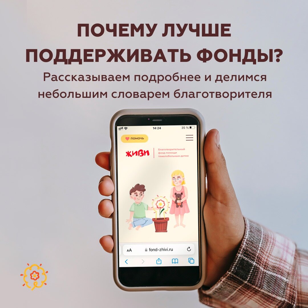 Совсем недавно мы делали публикацию о том, как начать помогать, подробнее можете посмотреть тут https://clck.ru/35fcoe Сегодня же, мы хотим более подробно рассказать, почему лучше делать пожертвования фондам. Как часто вы видите социальные рекламы по телевидению или на билбордах вашего города? Обычно, мы руководствуемся эмпатией к конкретному человеку или социальной проблеме, делая пожертвования. Почему же лучше жертвовать благотворительным фондам? Сейчас расскажем. Системность = стабильность. Системная помощь направлена на поддержку большого количества человек либо на решение проблемы, с которой фонд работает долгое время. Например, наш фонд «ЖИВИ», оказывает системную поддержку детских региональных онкогематологических отделений что позволяет позволяя решать целый ряд проблем, которые невозможно решить адресной помощью: улучшает техническое оснащение, закупает лекарства, расходные материалы, создает необходимых условия для реабилитации маленьких пациентов. Регулярные пожертвования =