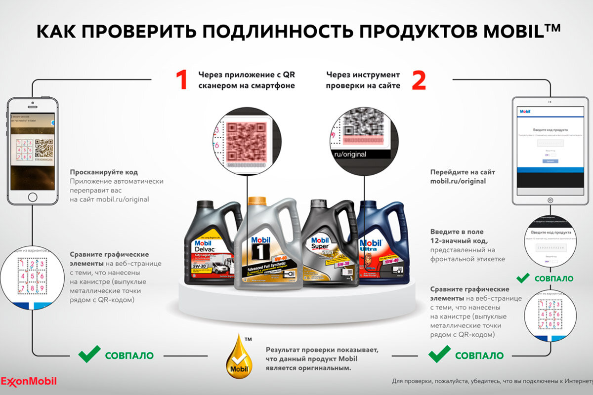 Сервис проверки оригинала и фальсификата представлен на официальном сайте https://original.mobil.ru/. Для его использования необходимо: