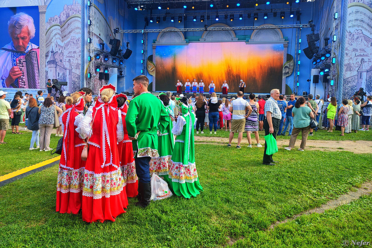 Впервые побывала на фестивале "Русское поле". Это крупнейшее фольклорное мероприятие с песнями, плясками, народными промыслами и дегустацией древнерусских блюд. В этом году установили несколько рекордов: самая большая в мире калья, самый большой кокошник, самый большой лапоть из лыка, самый большой лапоть из бересты. Дело было в московском парке Коломенское. Фестиваль проводился два дня. Я приехала в субботу. На главной сцене проходил конкурс хоров, в котором участвовали коллективы из разных городов России. Успела захватить только последний хор. На видео ансамбль "Визерунок", Мелитополь (Запорожская область). А потом началось ПРЕКРАСНОЕ - конкурс танцевальных коллективов! И это не детский утренник, это концерт высокого уровня, с хорошими ведущими и потрясающими номерами. Я как прилипла к сцене, так и простояла два часа, не могла оторваться. Они ТАКИЕ КРАСИВЫЕ, ТАКИЕ ЗАДОРНЫЕ, просто праздник какой-то. Ниже есть видео, эдакий дайджест, небольшие фрагменты из выступлений каждого ансамбл