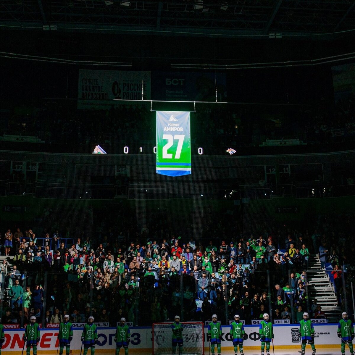 Церемония состоялась перед началом матча регулярного чемпионата КХЛ между «Салаватом Юлаевым» и «Металлургом». Стяг с номером 27, под которым выступал хоккеист, поднят под своды «Уфа-Арены». «Родион Амиров ушел из жизни 14 августа 2023 года. Два года назад молодому игроку был вынесен тяжелый диагноз – опухоль головного мозга. Он до конца боролся с болезнью и был настроен только на победу. Родион – талантливый и яркий нападающий. Он навсегда останется в наших сердцах и будет вдохновлять молодых хоккеистов. Амиров – яркий пример стойкости, мужества и профессионализма. Он – гордость хоккейного клуба «Салават Юлаев», – говорится в сообщении клуба. Фото: страница «Салавата Юлаева» в «ВКонтакте»