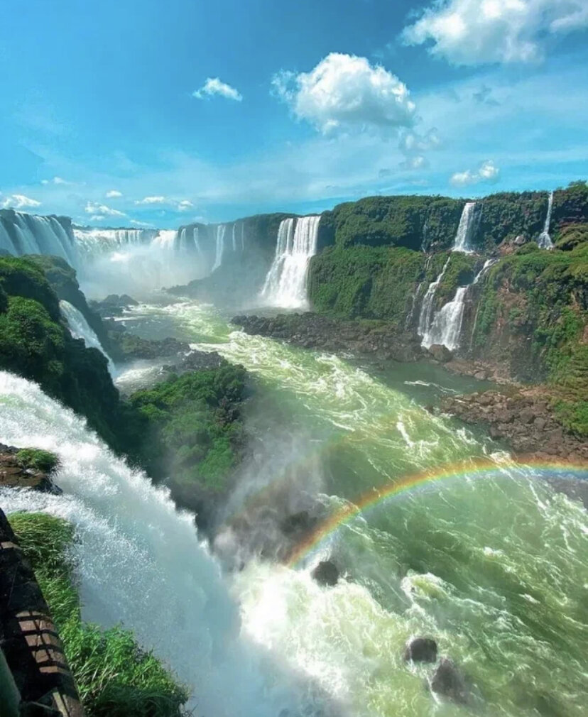 На языке местного племени гуарани, испокон веков обитавшего на берегах реки Игуасу, это название означает «Большая вода» (у guaso). Река растекается здесь на 2,7 км и образует каскад из 270 отдельных водопадов на границе разлома глубиной 75 м. Этот разлом называется Гаргантадель Диабло («Пасть дьявола»). Местные племена сложили о появлении «Большой воды» множество наивных сказаний, легенд и мифов. В бразильском Национальном парке Игуасу водится множество редких и находящихся под угрозой уничтожения птиц и животных, здесь насчитывается пять типов лесов и экосистем. С аргентинской стороны посетители могут пройтись по разным туристическим тропам, причем некоторые из них проложены буквально на краю пропасти под водопадом. Как добраться Существуют регулярные рейсы в Фос до Игуасу из Рио-де-Жанейро, а также других городов Бразилии, и ежедневные рейсы из Буэнос-Айреса в Пуэрто-Игуасу, либо можно пройти по Мосту дружбы из города Сьюдад-дель-Эсте на парагвайской стороне. Понравилось место ? Нап