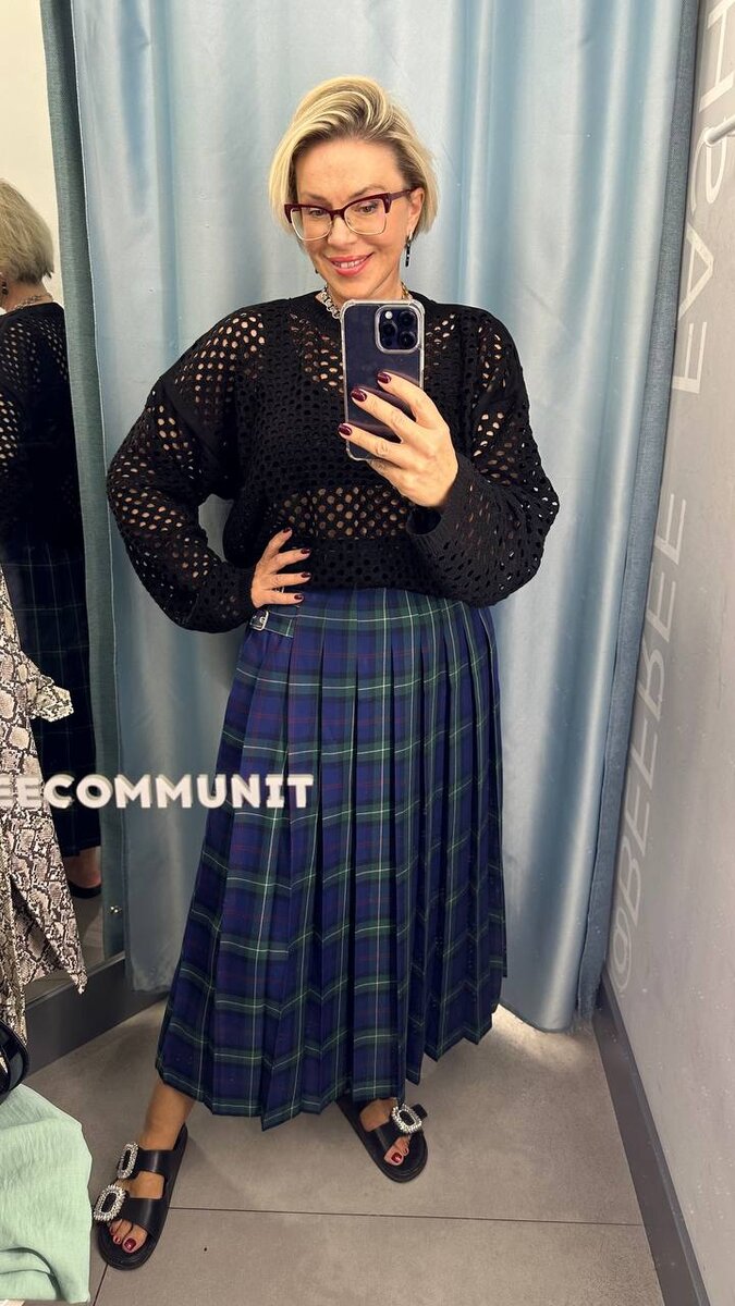 Телеграм: iriglow Не забывайте ставить лайк за мои старания! Понравилась вот такая интересная юбка в клетку длины миди. В принте несколько цветов, которые вы можете использовать в своем образе в виде, к примеру, сумки или обуви. Фасон особенно подойдет тем девушкам, которые хотят добавить немного объема внизу. Цена - 3599 руб. На мне размер М. Ссылка на юбку Очень понравился этот костюм в клетку - стильный и функциональный. Тепло - носим с футболкой, холодно - с водолазкой. Можно надеть удобную обувь, тогда костюм будет хорош для поездок. Идет размер в размер. К этому жакету м