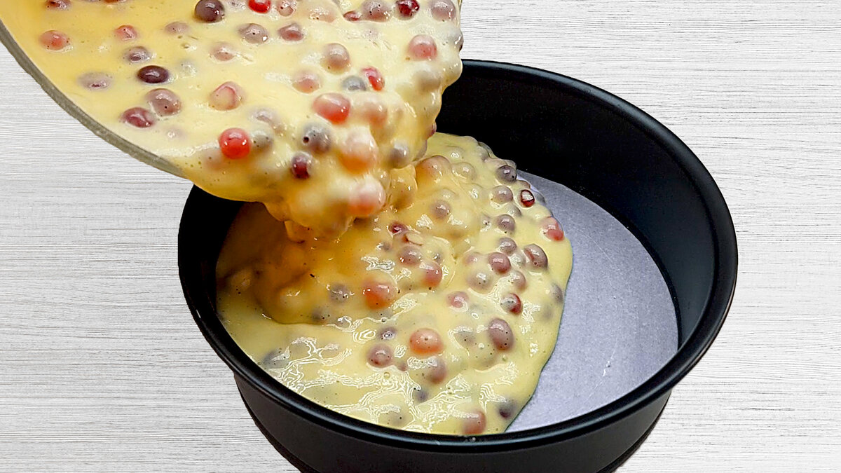 300-350 г клюквы Способ приготовления: К яйцам добавить сахар и ванильный сахар и все хорошо взбить миксером К взбитой яично-сахарной смеси добавить йогурт и все опять взбить миксером Добавить к полученной яично-йогуртовой смеси муку и разрыхлитель и все опять тщательно перемешать миксером В полученное тесто всыпать клюкву и акку
