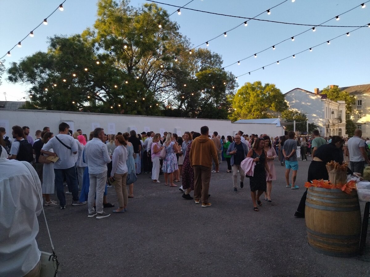 Всё происходило на отрытом воздухе, в центре Севастополя, между улицами Айвазовского и Маяковского. И народ, прогуливающийся вечером туда-сюда, наверняка задавался вопросом "А чего это они там все с бокалами и дринчат?" Ну и заходил на огонёк, чтобы присоединиться.